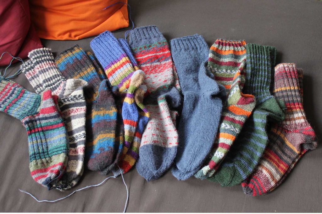 In unregelmäßigen Abständen treffen wir uns zum Stricken und (für MultitaskerInnen) Plaudern, Musik- und Texte hören. Im Moment haben wir Strümpfe mit JoJo-Ferse am Wickel. Das Fortgeschrittenensortiment hält „Perlstaucher“ bereit….