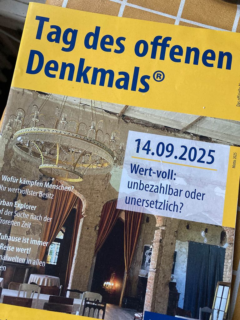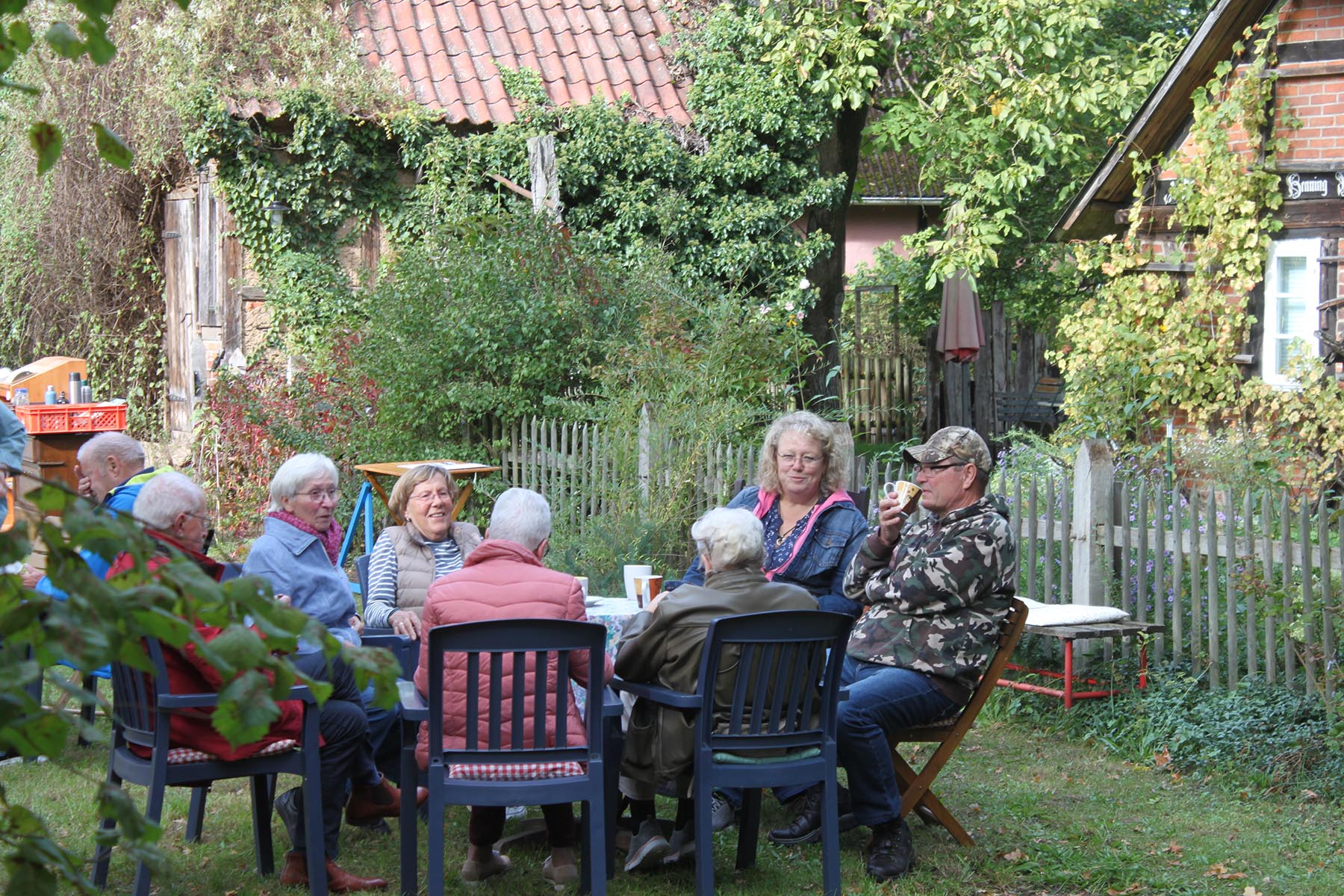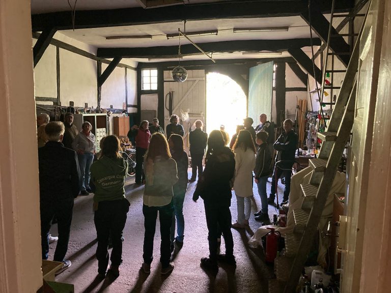 Drei angebotene Führungen von jeweils einer Stunde Dauer waren gut besucht. Das Publikum, überwiegend aus der Region angereist, erwies sich als interessiert und teilweise sehr fachkundig, so dass wir noch einiges lernen und gemeinsam die ein oder andere offene Frage der Bautechnik, der Historik oder ehemaligen Nutzung diskutieren konnten. Anschließend stärkten sich alle bei Kaffee und leckerem Kuchen von Bäcker Heiko Rache.