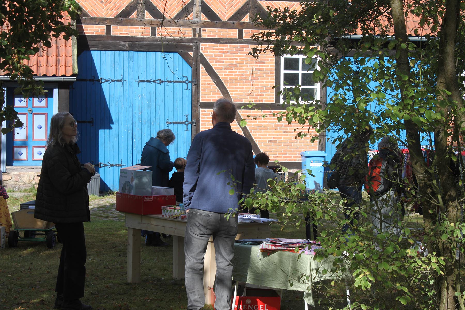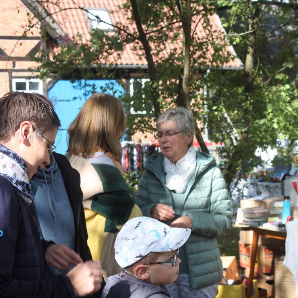 Bei bestem Wetter (sorry, an diesem Tag war es ausnahmsweise mal gut, dass es – wie leider seit Wochen – nicht geregnet hat) haben kleine und große Schätze aus verstaubten Winkeln, Schränken und Scheunen den Weg über den Tapeziertisch zu neuer Wertschätzung gefunden. Elf Stände aus dem Dorf sind zusammen gekommen, dazu die wichtigste Anlaufstelle an diesem Tag: der Kaffe- und Kuchenstand. Heldenhaft hat Susanne Stefan die Ausgabe gemanaged, der Andrang auf die leckeren Selbstgebackenen war riesig. Mit 372,97 € konnte sich die Spendenkasse dann auch sehen lassen – der NABU Lüchow-Dannenberg freut sich über die Zuwendung! Ich denke, alle haben die entspannte Atmosphäre genossen beim Stöbern, Plaudern, Schlemmen und Entspannen. Vielen Dank an alle Beteiligten!!! Bis zum nächsten Mal!