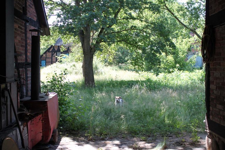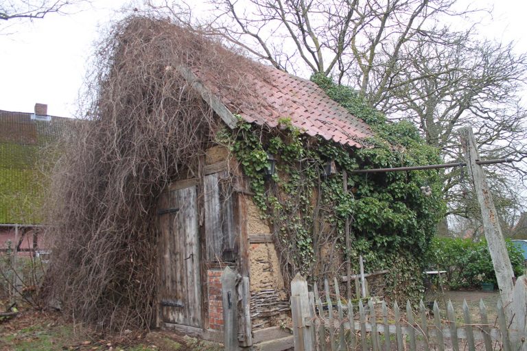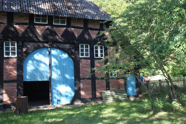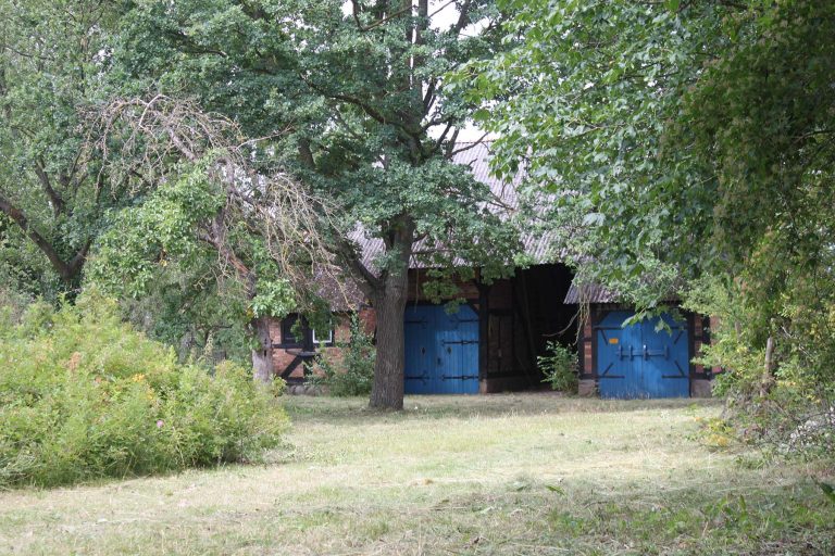 war zuletzt ein Schafstall, wird aber laut Aussagen meiner Nachbarn „Bienenhaus“ gerufen. Und tatsächlich haben wir beim Aufräumen zwei alte geflochtene Bienenkörbe entdeckt. Es ist ein Fachwerkhaus mit Lehmgefachen von 1910 und hat einen sehr atmosphärischen Innenraum. Und ja, es müsste mal repariert werden: Ein Workshop zum Thema „Lehmbau“ fände hier ein ideales Praxisobjekt.