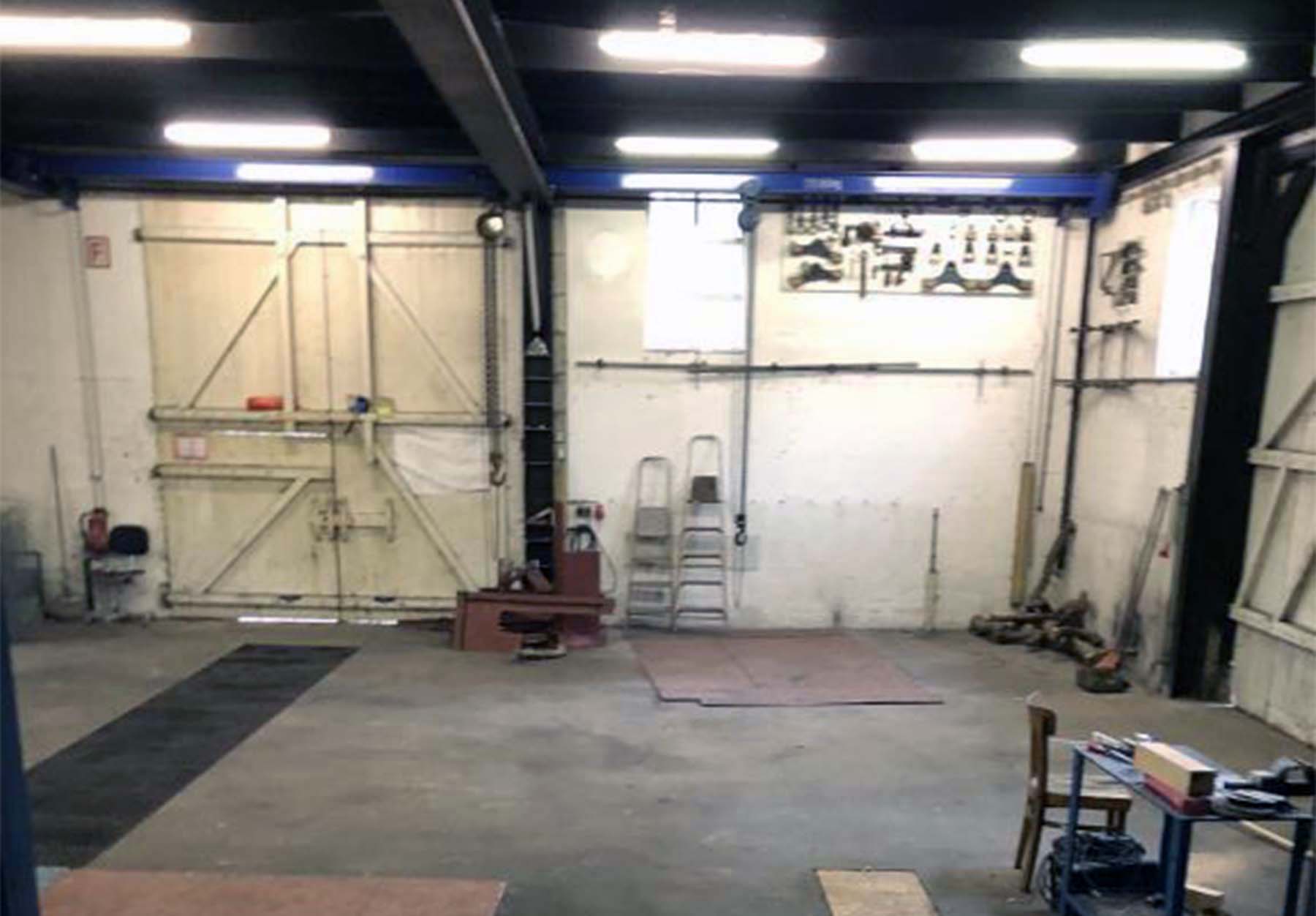 Im Erdgeschoss befindet sich die Montagehalle mit Gruben und Laufkränen und insgesamt vier riesigen Toren. Derzeit befindet sich hier das Lottenlager. Allerdings schreit dieser Raum nach höheren Aufgaben!
