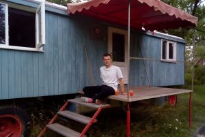 Wir haben ihn vor einigen Jahren gekauft und mit Hilfe eines Freundes ausgebaut. Zwei Schlafräume und eine Küche bringen bis zu vier Personen ganz gut über die Runden, fließend Wasser gibt es aus dem Gartenschlauch. Ein Bad mit Dusche und WC steht in der Tenne des Bauernhauses zur Nutzung bereit. Die Sommerveranda lädt zum gemütlichen Frühstück ein.