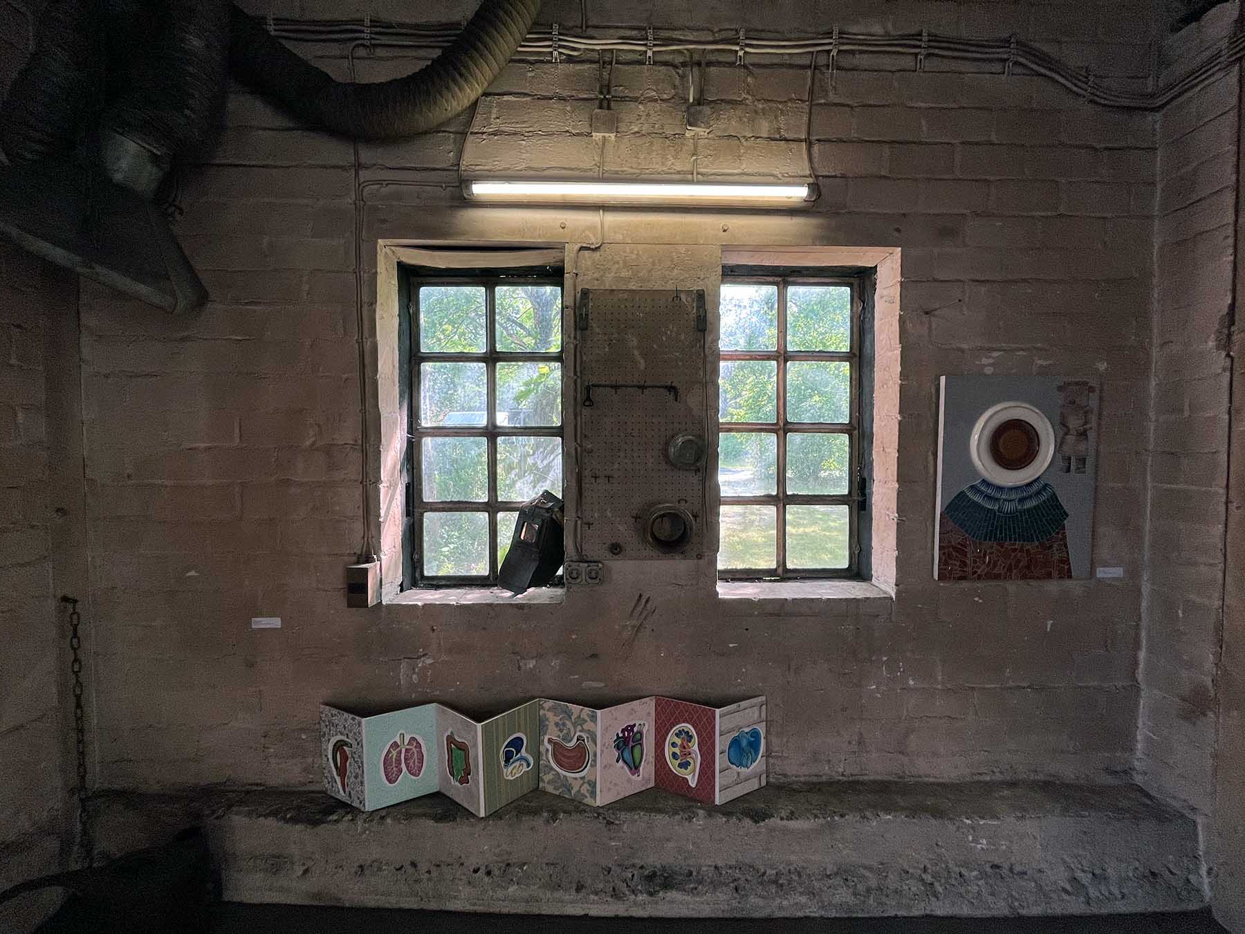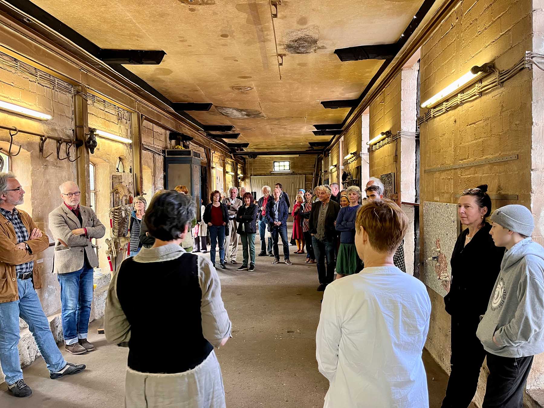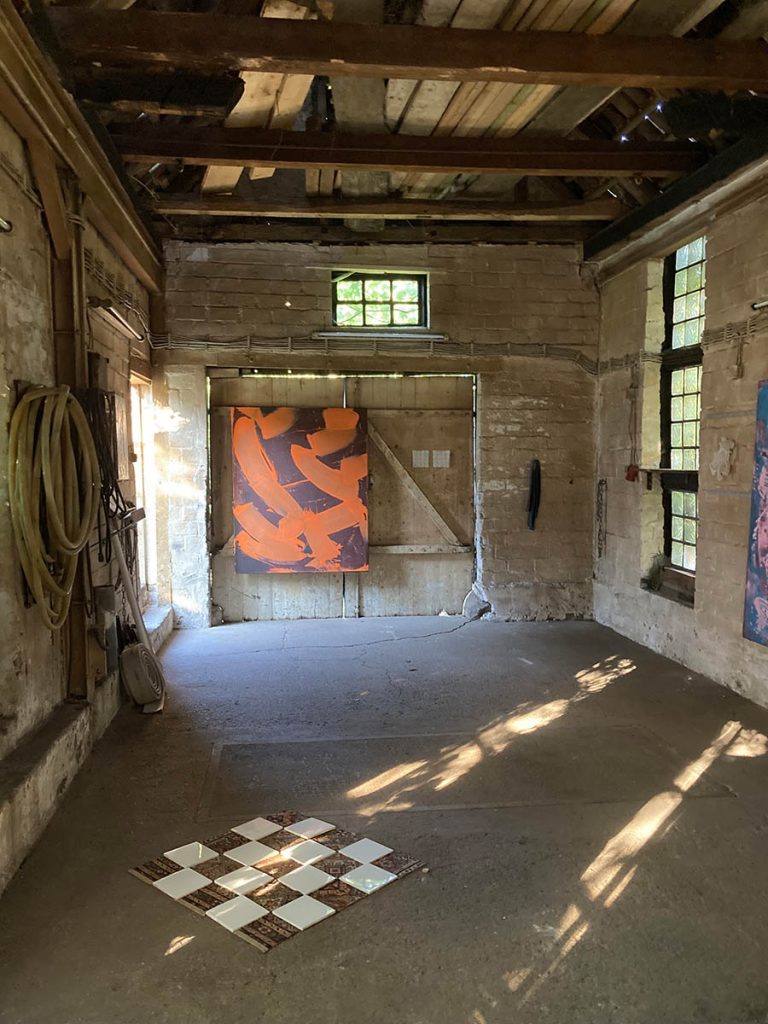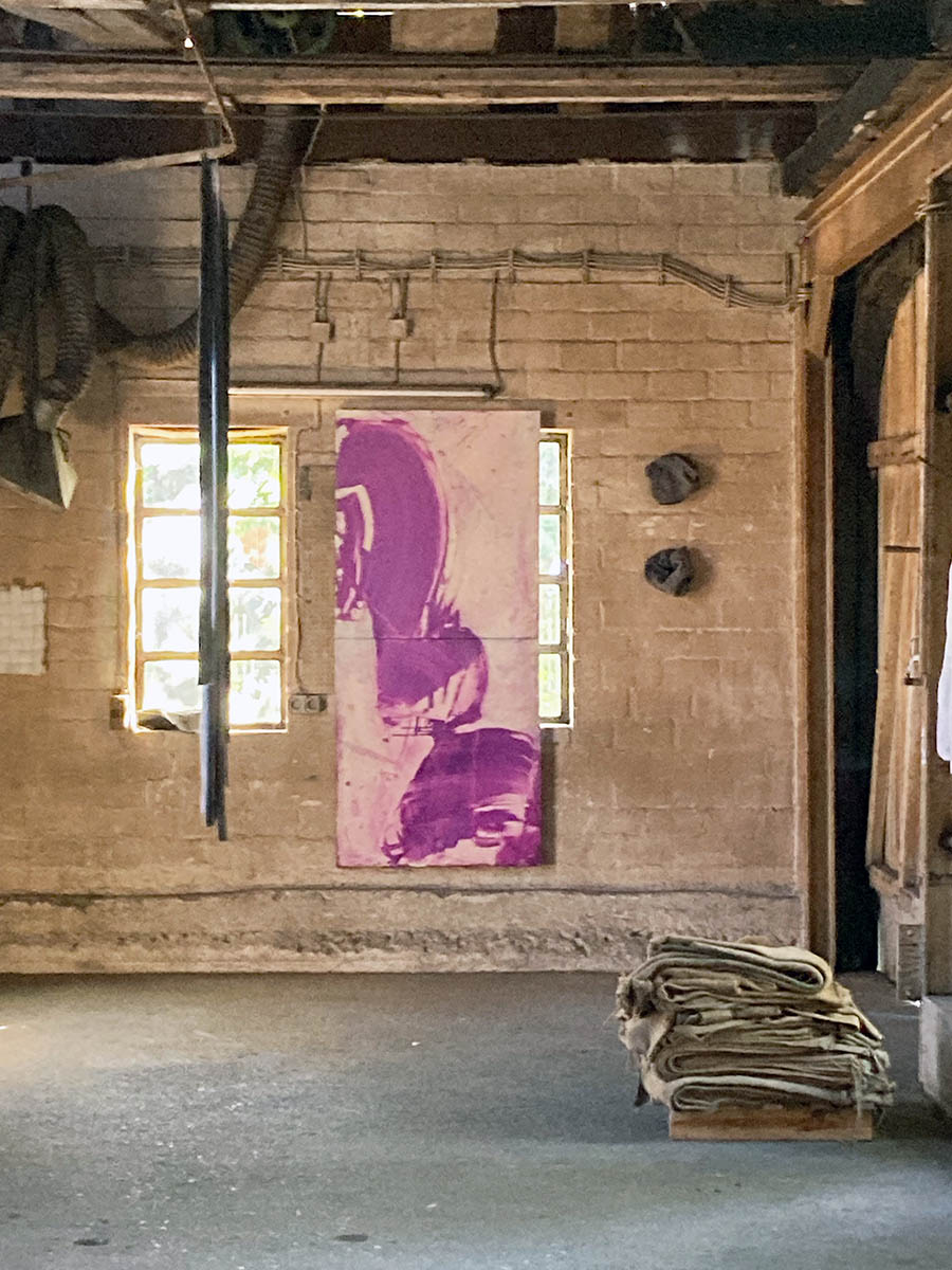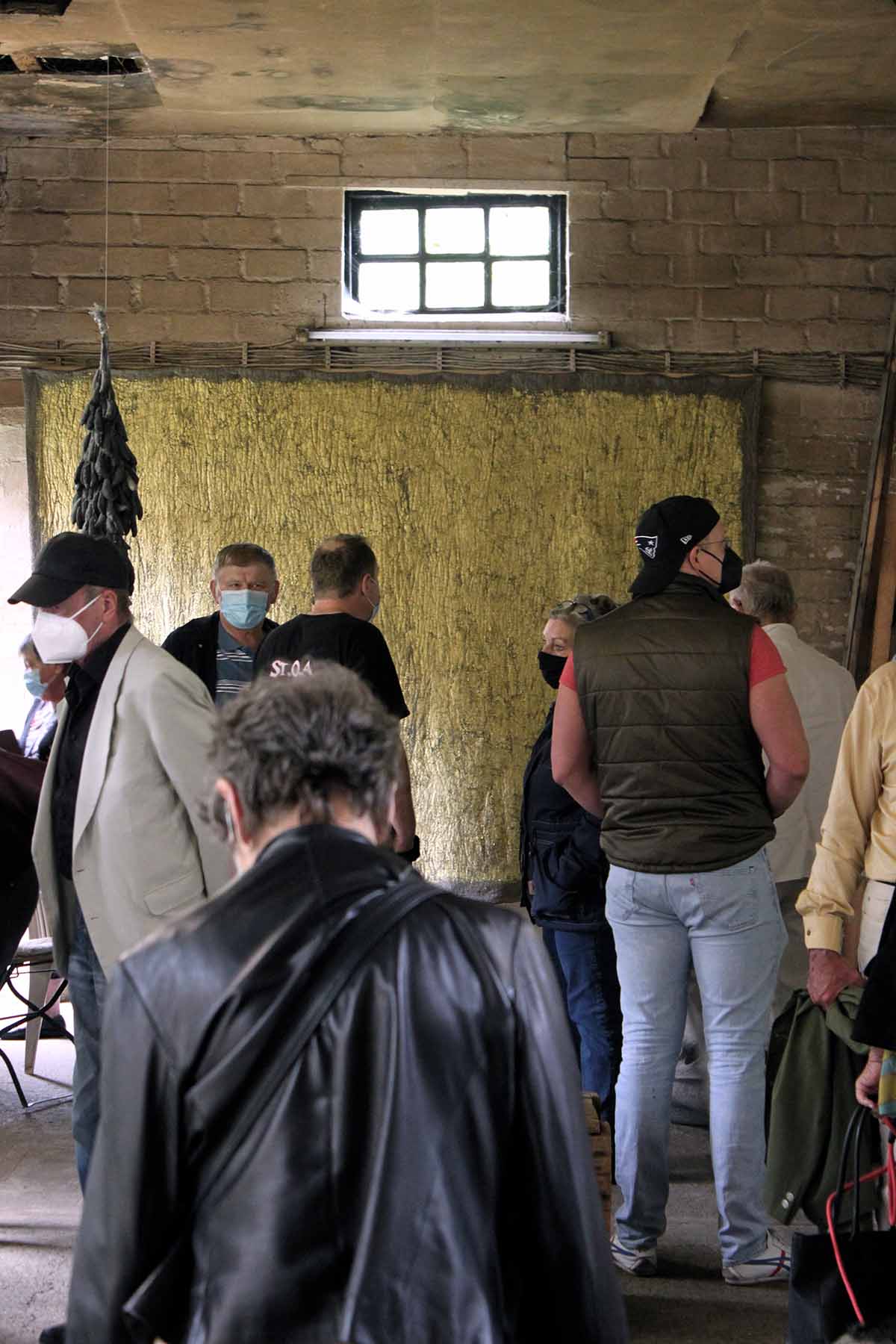 Und das möchte auch das Konzept: Kunst und Gut behaupten sich in in dieser eigenständigen Umgebung, gehen in direkten Austausch mit dem Raum und seinen Details. Die Besucher*innen begeben sich auf eine Entdeckungsreise mit allen Sinnen – ein wenig Ölgeruch begleitet die Erkundung der ausgestellten Arbeiten und der alten Mauern mit ihren Geschichten.
