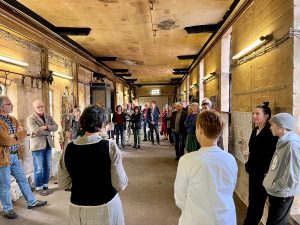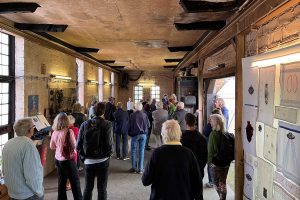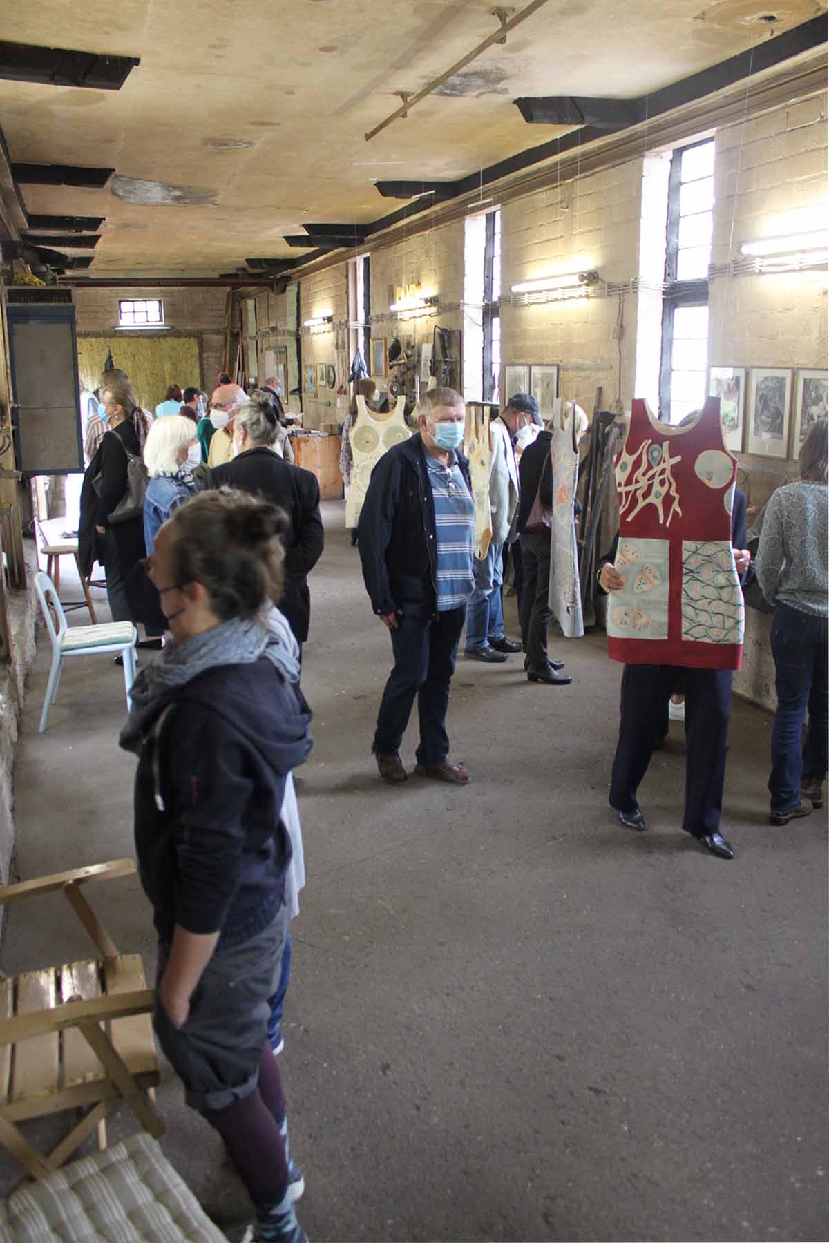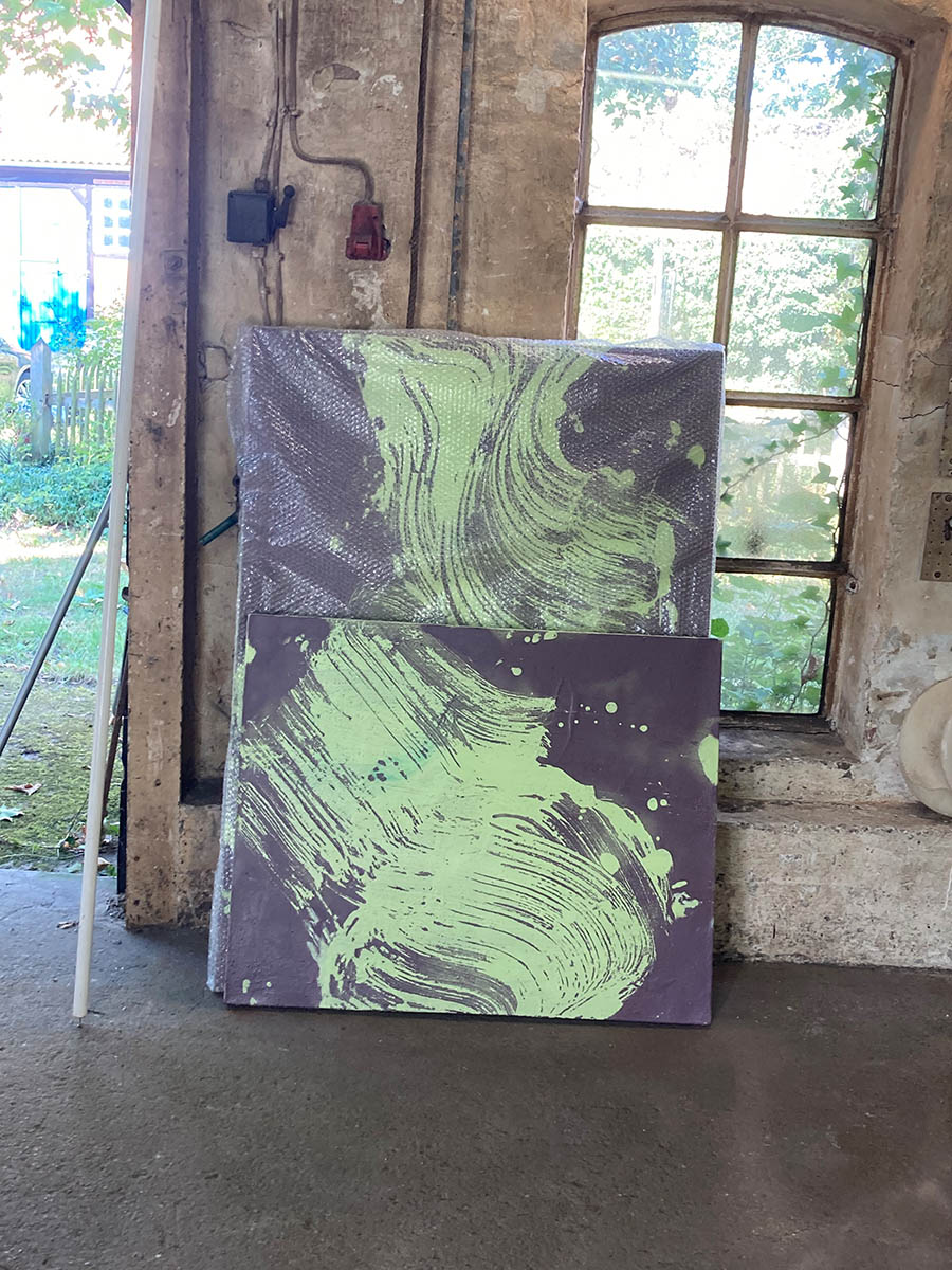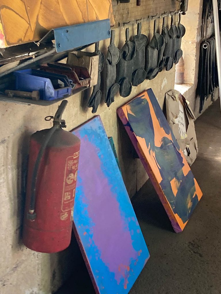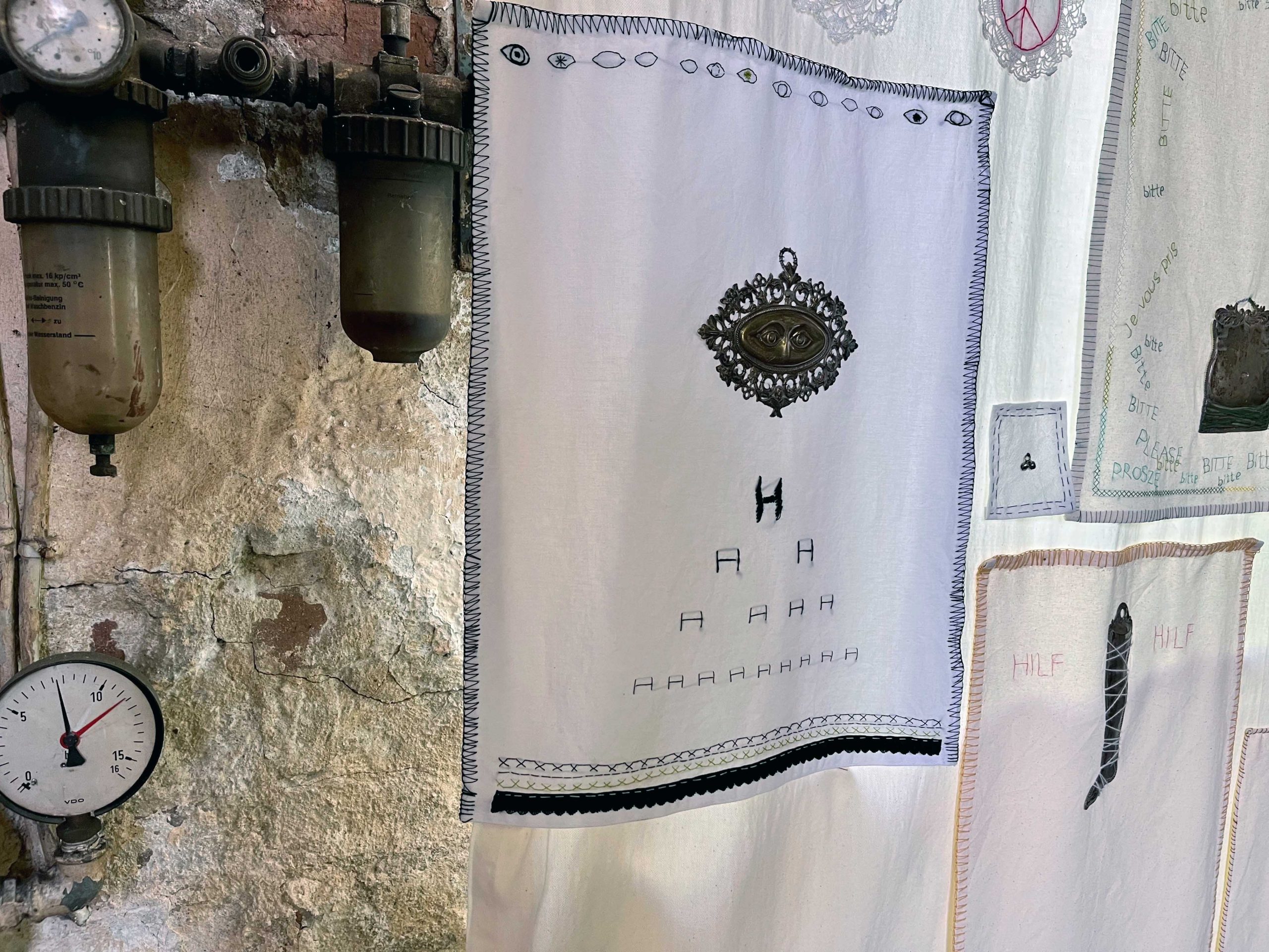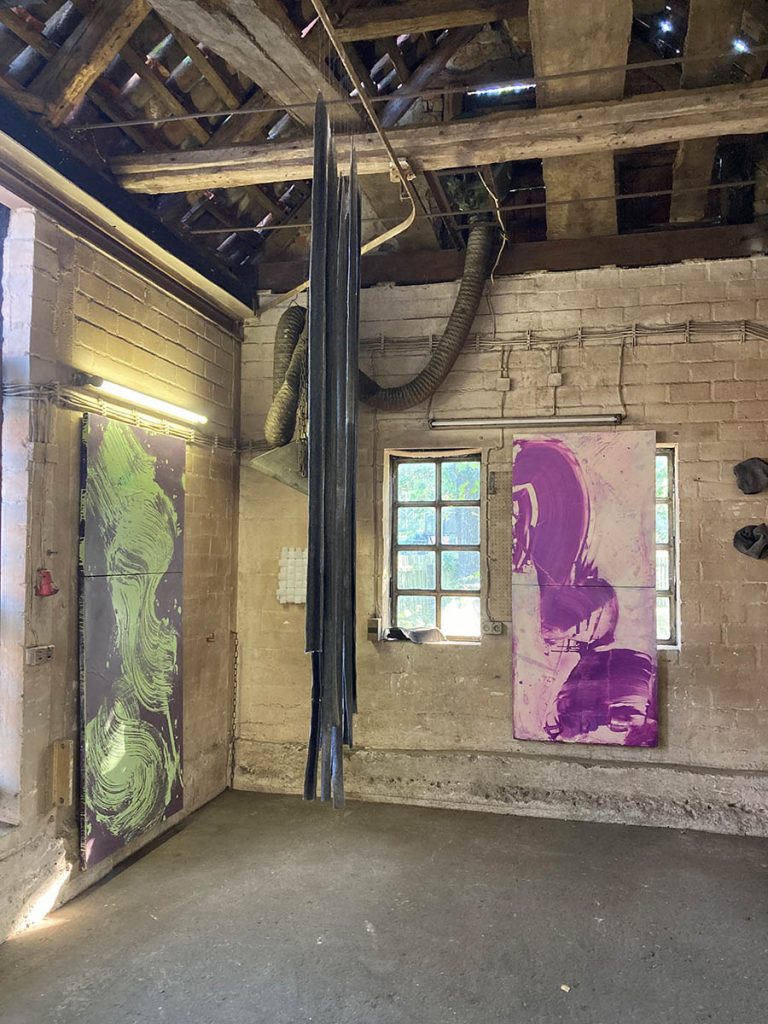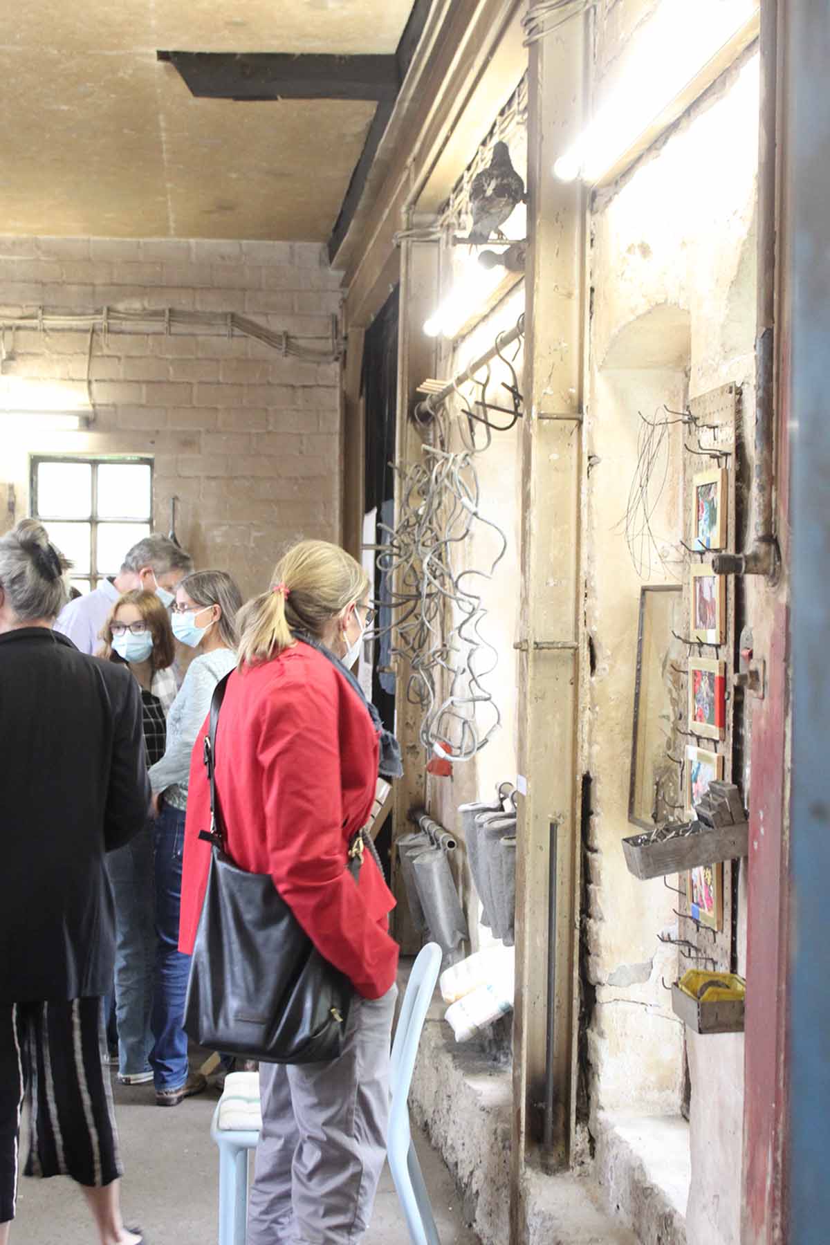 Und das möchte auch das Konzept: Kunst und Gut behaupten sich in in dieser eigenständigen Umgebung, gehen in direkten Austausch mit dem Raum und seinen Details. Die Besucher*innen begeben sich auf eine Entdeckungsreise mit allen Sinnen – ein wenig Ölgeruch begleitet die Erkundung der ausgestellten Arbeiten und der alten Mauern mit ihren Geschichten.