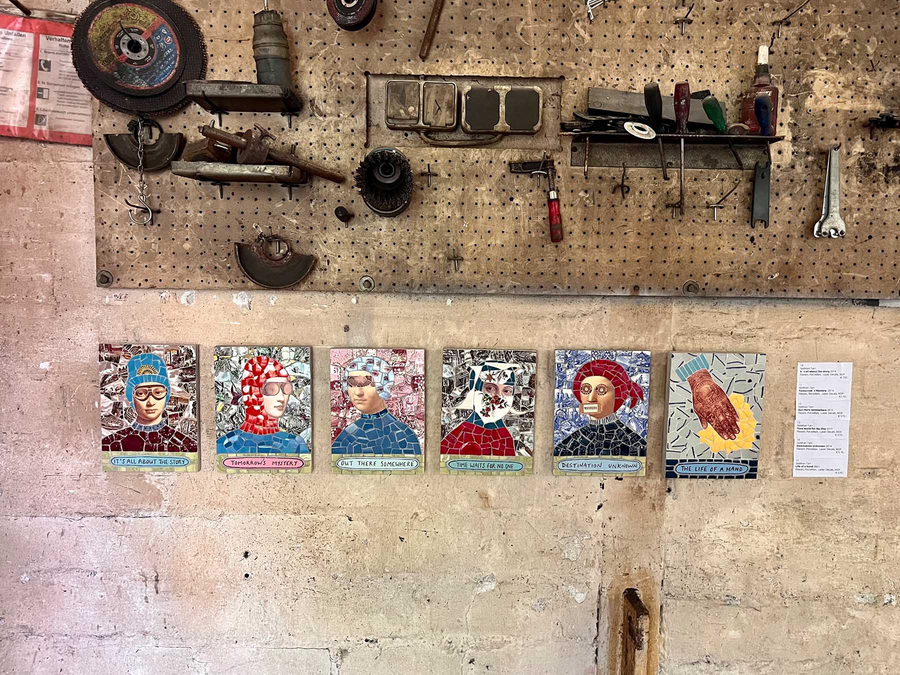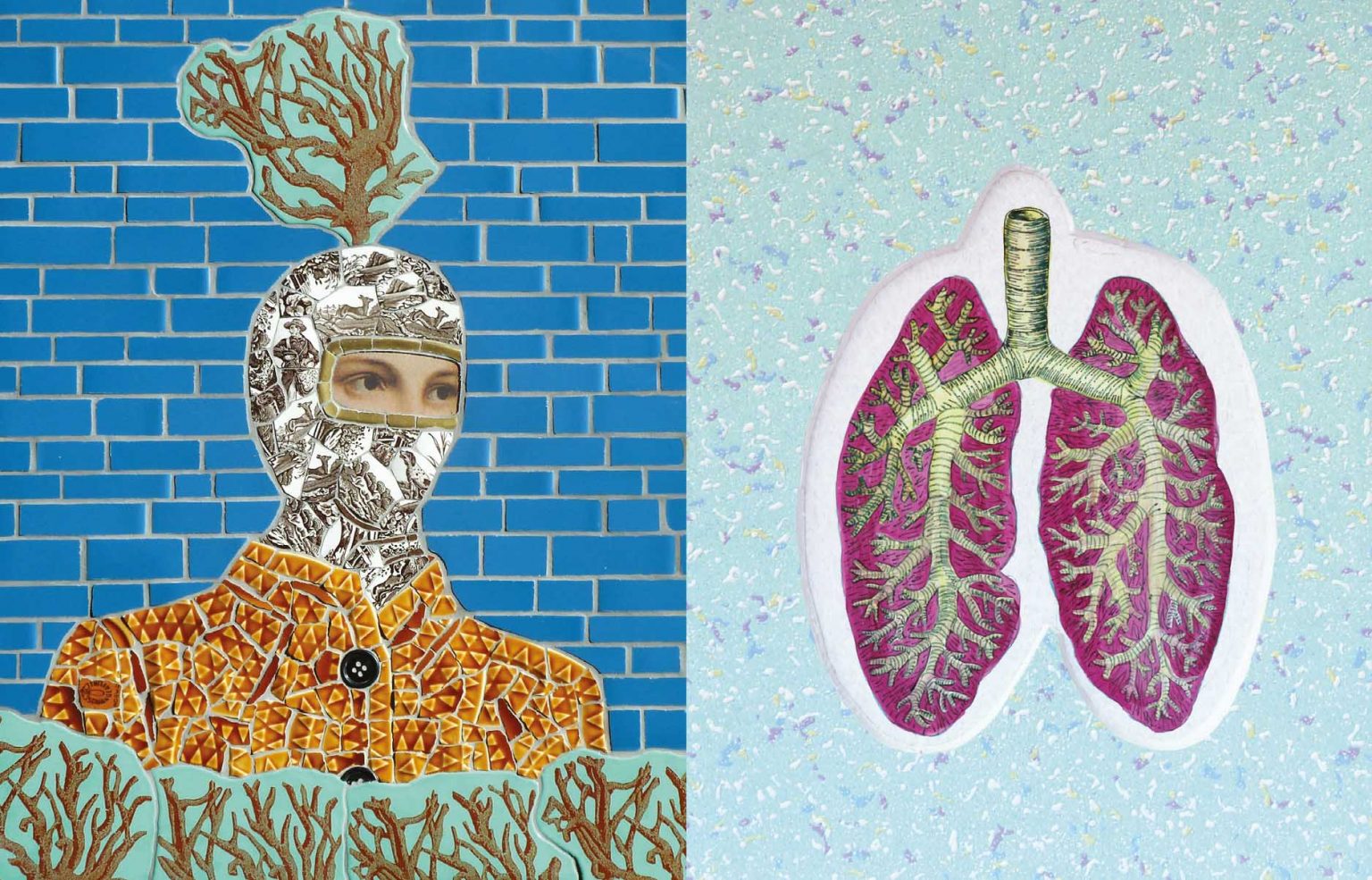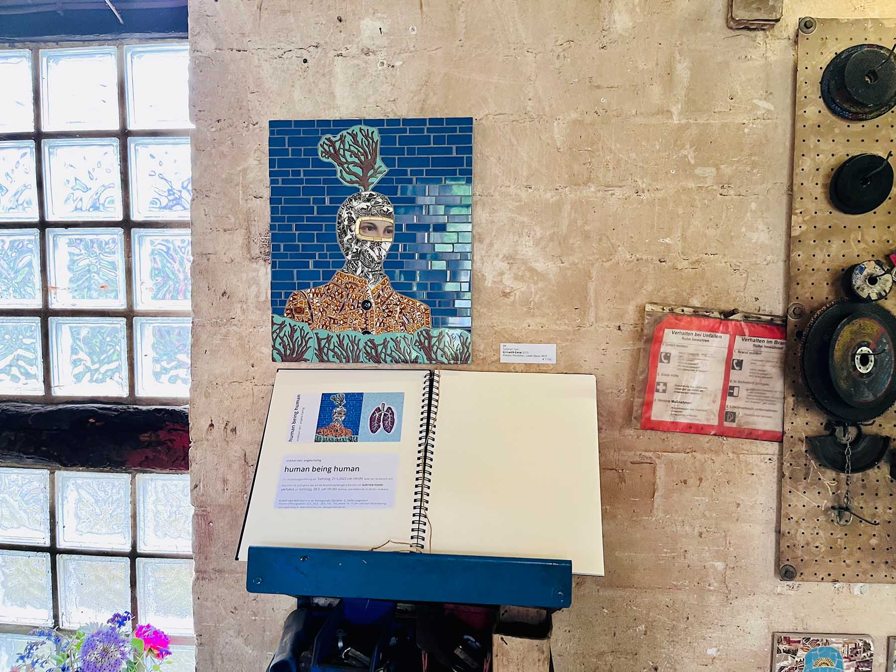 Das ein oder andere Déjà Vue mag einen ereilen, wenn man durch die Ausstellung human being human in der Galerie KUNST UND GUT in Langendorf schlendert. Fliesendekore der 60er und 70er und Omas beste Stücke aus dem Vertiko scheinen sich kurz vor dem endgültigen Entsorgungstod neu formiert zu haben und treten als selbstbewusste Mosaikcollagen oder ironische Mini-Installationen den Betrachter*innen entgegen.