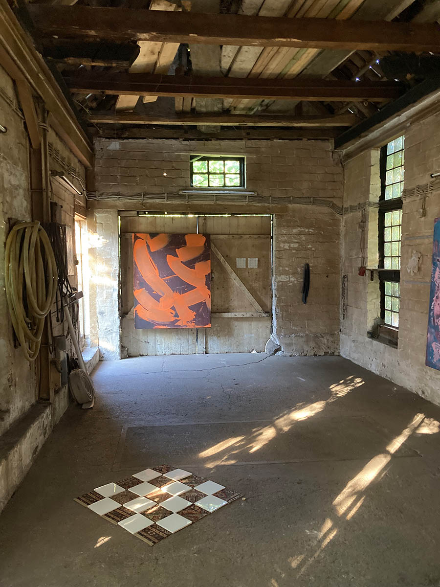 Im Ausstellungsraum, einer ehemalige KFZ-Montagehalle, gehen beide Werkgruppen einen spannenden Dialog mit den Spuren und Überbleibseln der ursprünglichen Nutzung ein. Zur Eröffnung gibt es neben den visuellen Reizen auch Genuss für die Ohren: Live-Musik mit Clara Ipsen (Saxophon) und Frederik Seeba (Piano).