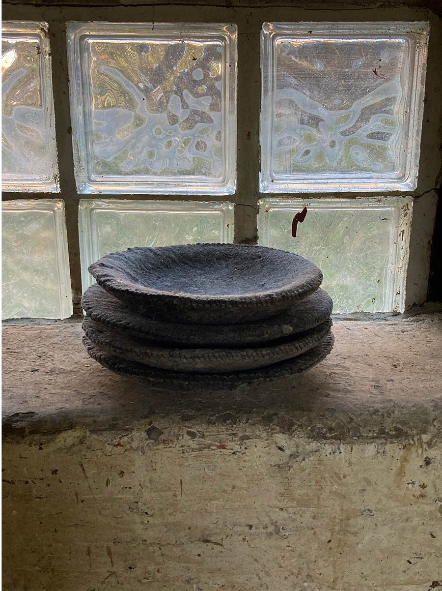 Angela Hartig (Langendorf) lotet mit ihren Objekten aus Filz und Wachs das Gestaltungspotenzial des Materials aus. Die Arbeiten thematisieren Fläche und Form, Rhythmus und Textur, Festigkeit und Weichheit, Abstraktion und Assoziation. Sie stellen formal und inhaltlich Bezüge zur Umgebung und deren historischen Dimenionen her.